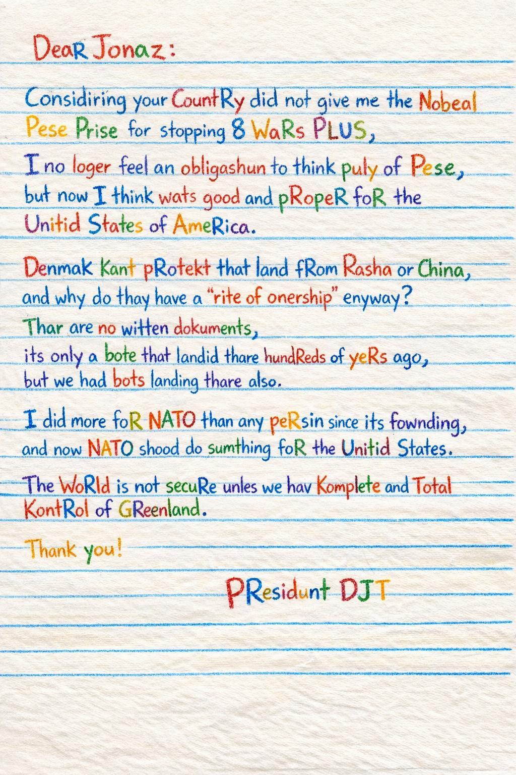 “Considering your Country decided not to give me the Nobel Peace Prize…”