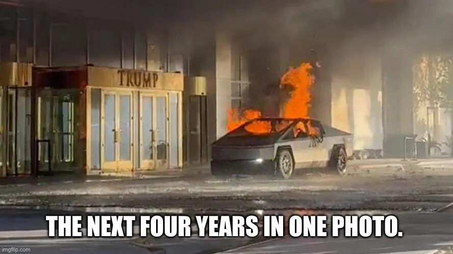 Make the Tesla a dumpster with all of Trump’s cronies tossing azidoazide azide into it, and you’re on to something.